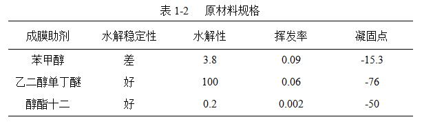 醇酯十二與其它成膜助劑相比較,水溶性小,且容易被乳膠離子吸收,可以直接接觸,更易于對(duì)膠粒的溶脹;醇酯十二的揮發(fā)速度低,成膜前保留在水性漆涂層中,溶劑作用不會(huì)受到水的揮發(fā)影響,成膜的單釜連續(xù)性好;而其又具有適宜的揮發(fā)度,在水性漆成膜后短時(shí)間內(nèi)完全揮發(fā)掉,不會(huì)影響水性漆配方設(shè)計(jì)所預(yù)期的硬度和光澤,如表1-2。