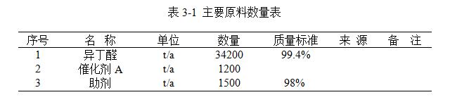本項(xiàng)目生產(chǎn)所需主要原料、用量及規(guī)格見表3-1。