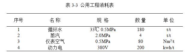 以上數(shù)據(jù)為裝置設(shè)計(jì)值,裝置生產(chǎn)達(dá)產(chǎn)后綜合指標(biāo)應(yīng)低于表中數(shù)據(jù)。