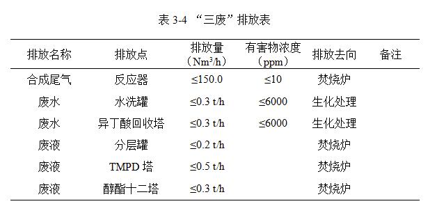本項(xiàng)目生產(chǎn)過程中“三廢”排放見表3-4。