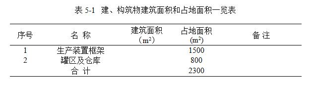 裝置區(qū)內(nèi)建、構(gòu)筑物占地面積及建筑面積見表5-1。