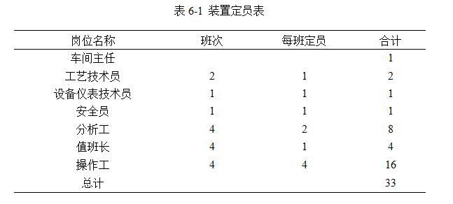 裝置定員不考慮行政管理人員,設(shè)備維修維護(hù)人員。