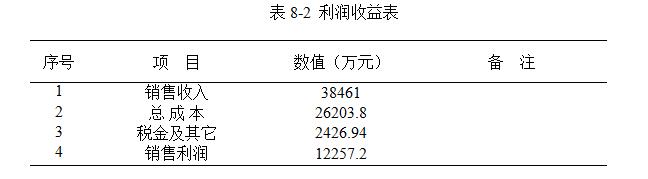 本項(xiàng)目利潤(rùn)與收益見表8-2。