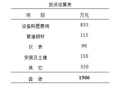 生產(chǎn)裝置界區(qū)內(nèi)投資估算如下表: