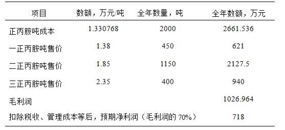 10.4.1.2正丙胺年成本及計(jì)算利潤(rùn)