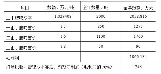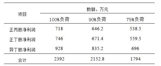 該裝置的以全年生產(chǎn)多種胺類產(chǎn)品中的一種計(jì)算收益情況如下表。企業(yè)可以根據(jù)市場(chǎng)供需情況,靈活安排幾個(gè)品種胺類的開車。